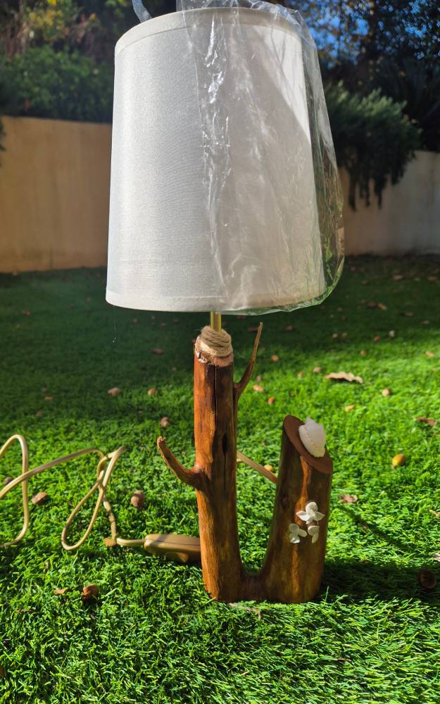 Lampe, bois et coquillages