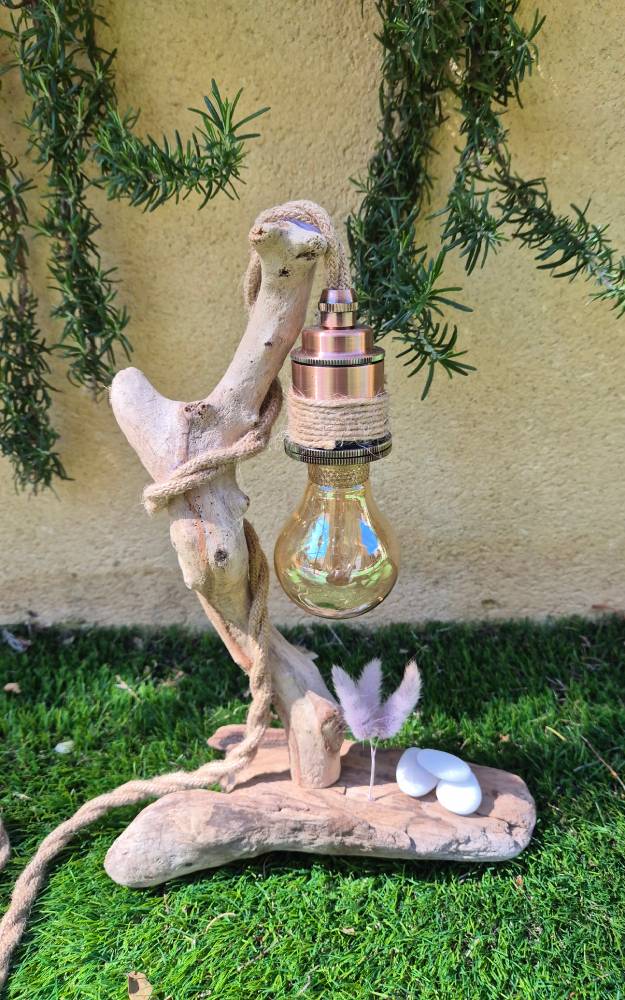 Lampe et bois flotté