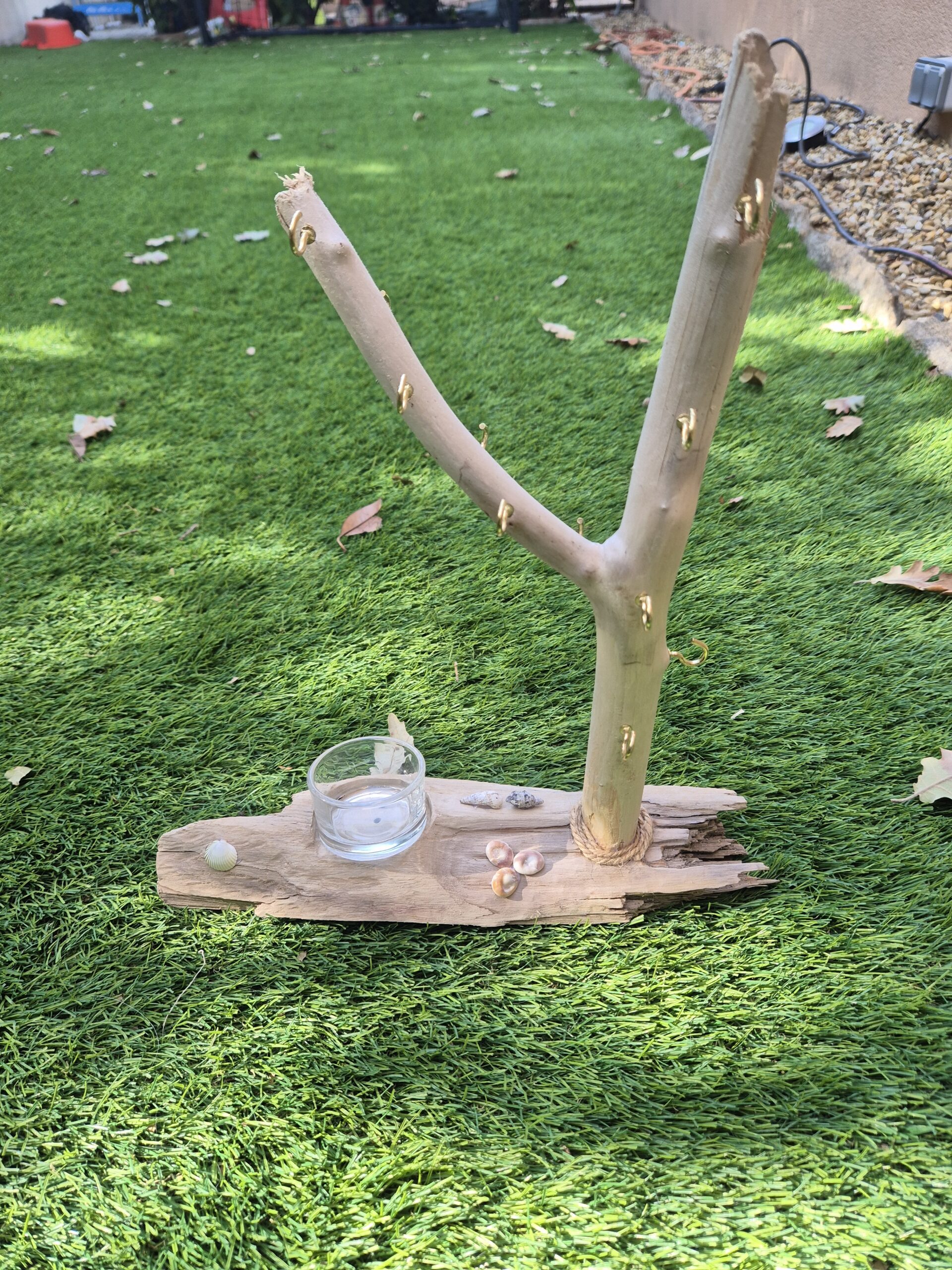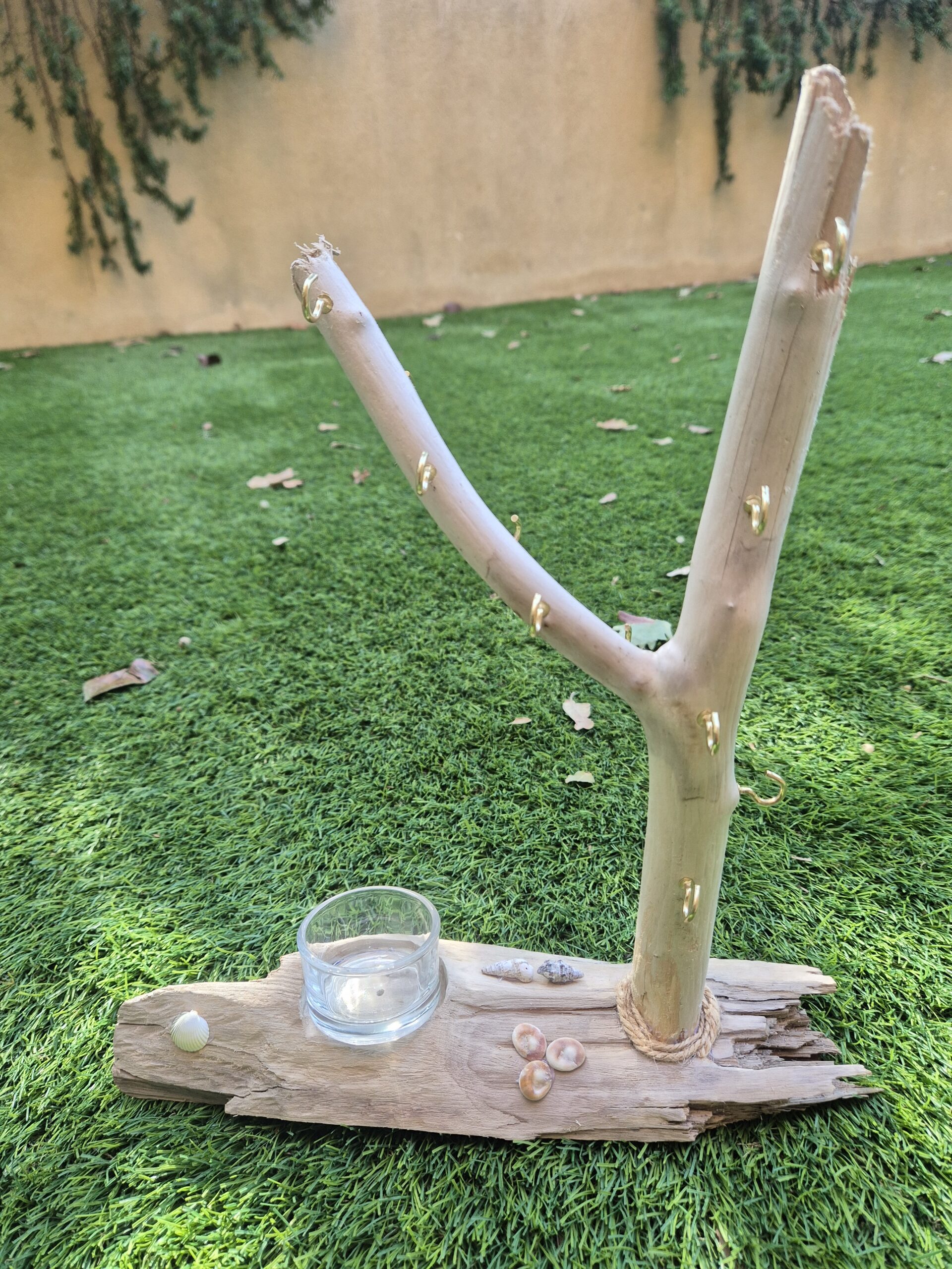 Arbre à bijoux coquillages en bois flotté idéal pour y installer vos bijoux et apporter un peu de nature à votre décoration intérieure.