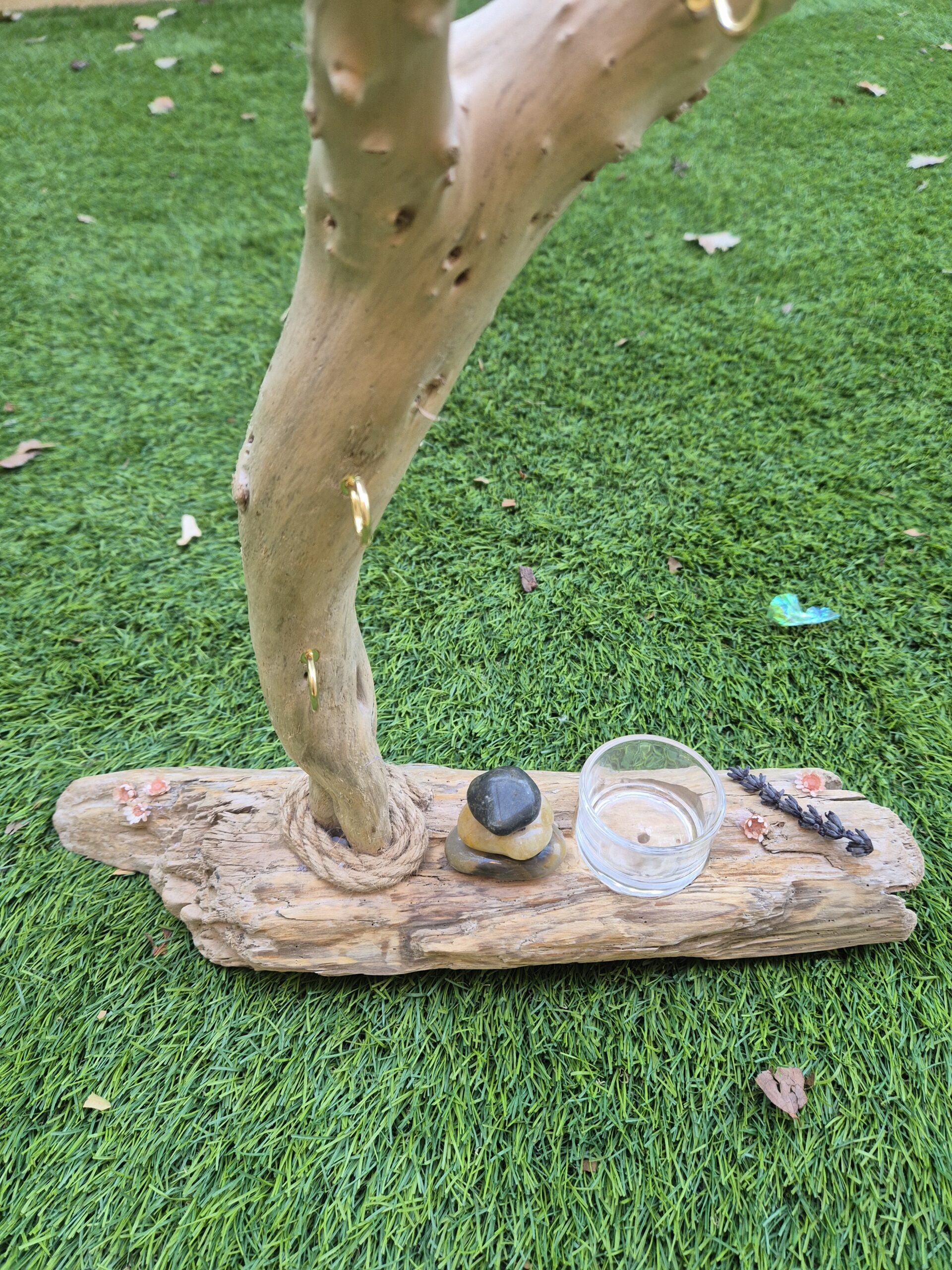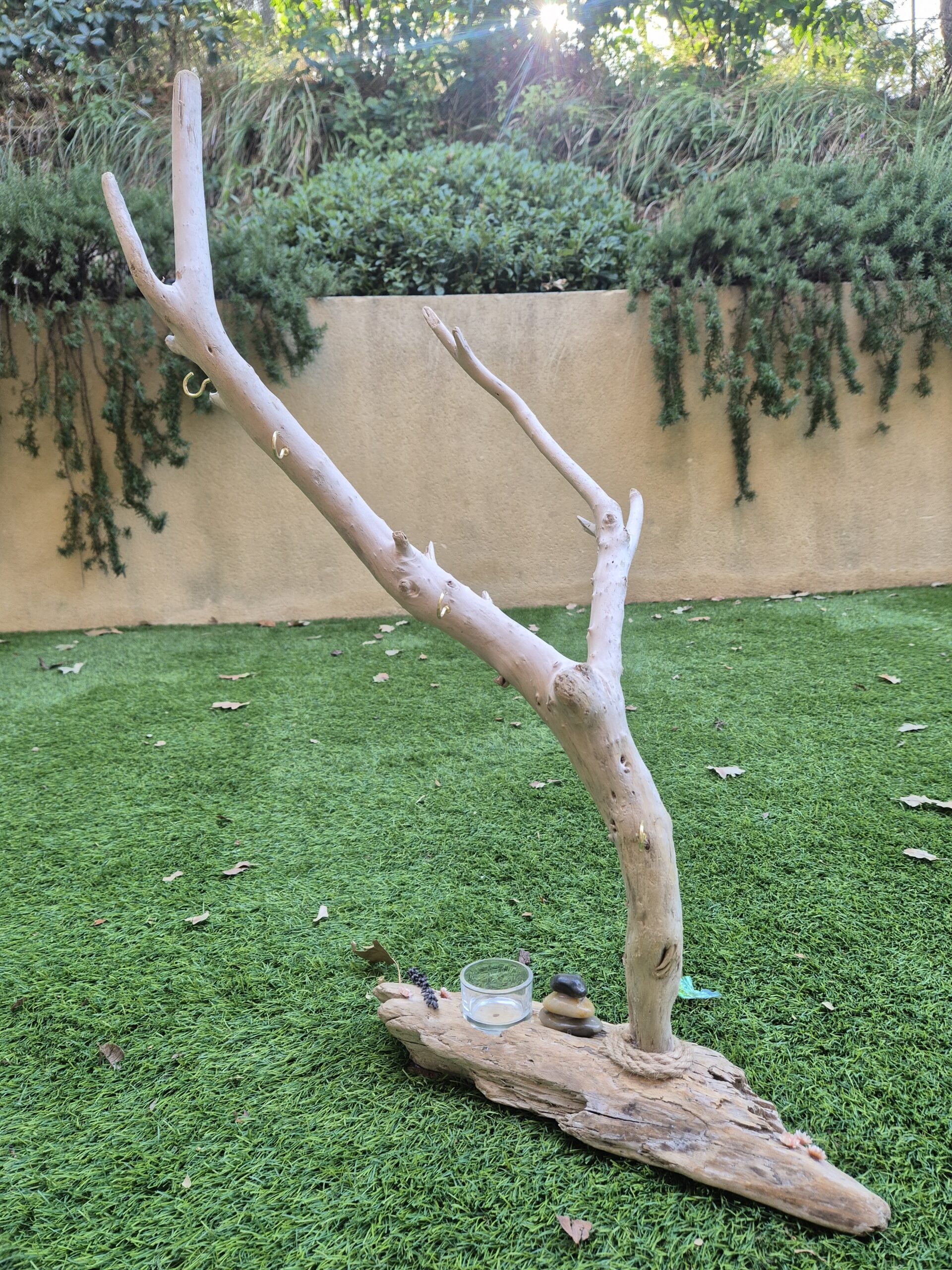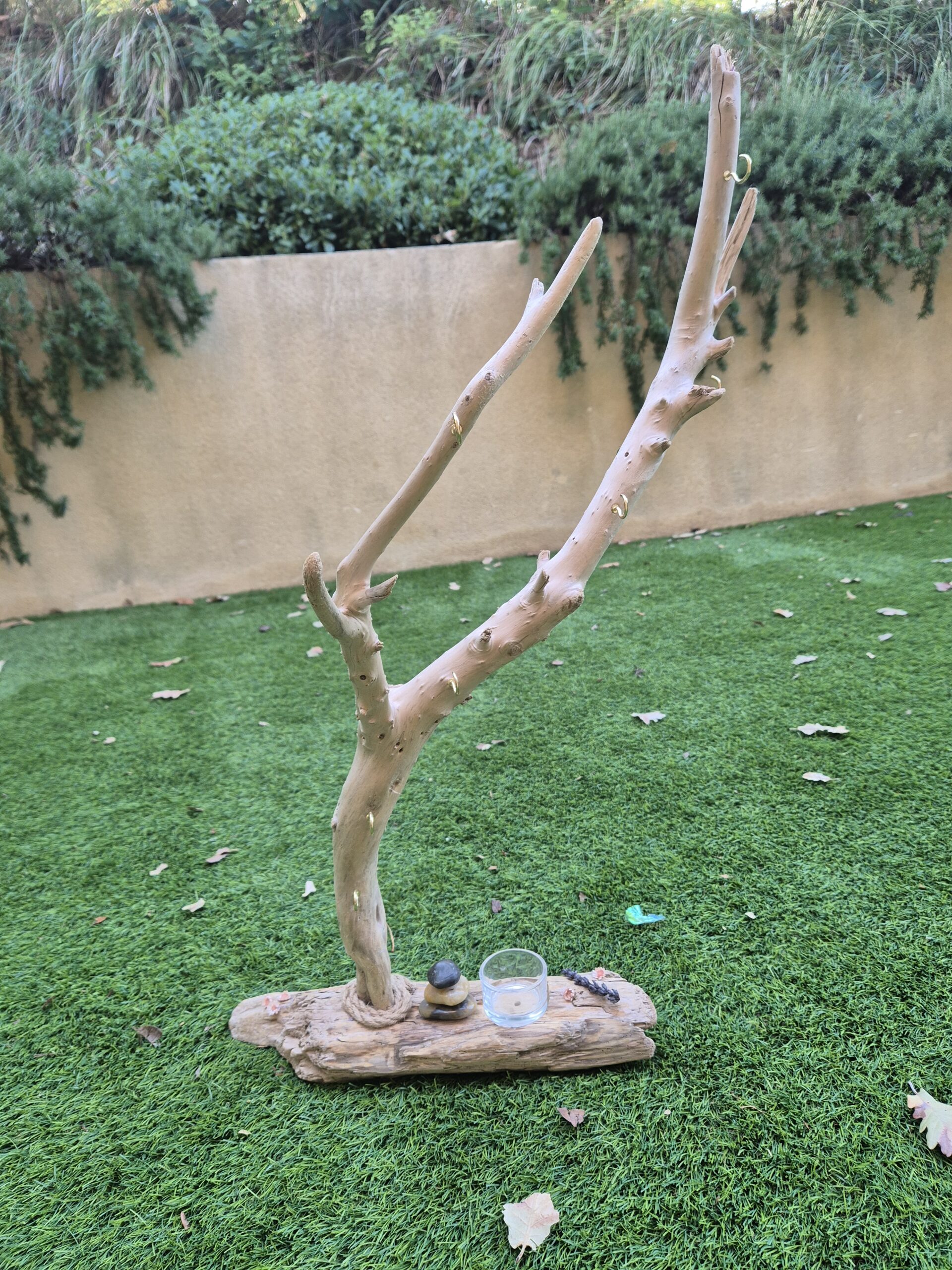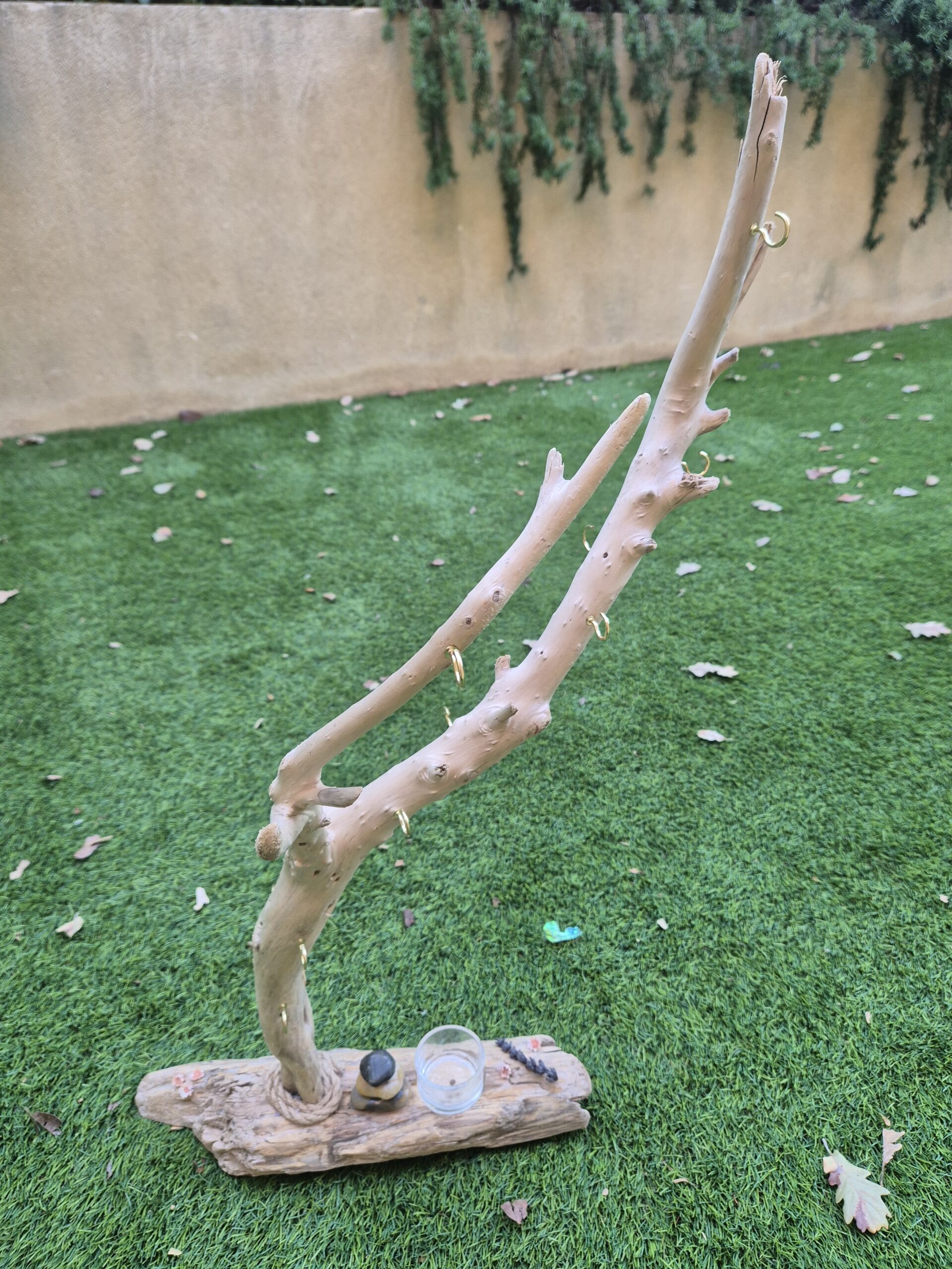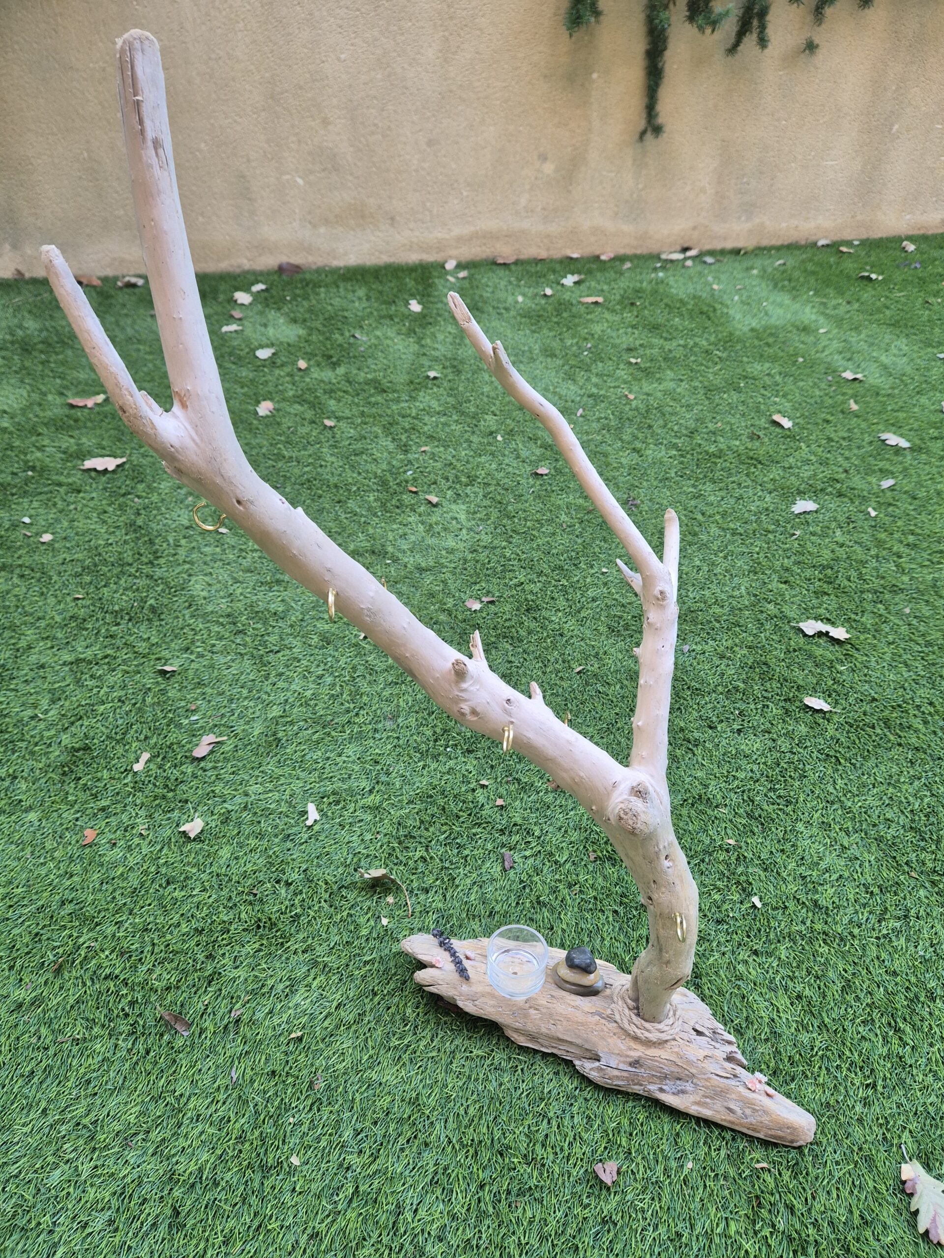 Grand arbre à bijoux en bois flotté idéal pour y installer vos grands bijoux et apporter un peu de nature à votre décoration intérieure.