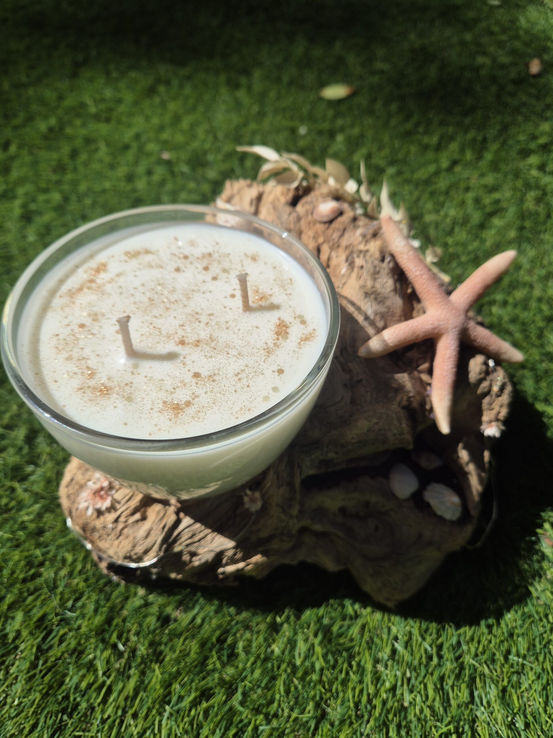 Bougie naturelle: parfum monoï à la cire de soja, sans colorant.